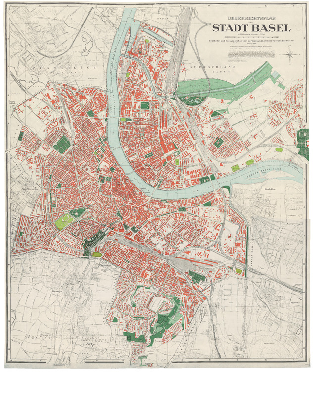 - Die historischen «Übersichtspläne der Stadt Basel» veranschaulichen den Fortgang der Verstädterung. Der Plan von 1913 zeigt im äusseren Stadtgebiet noch unbebaute Flächen. Anders derjenige von 1961: Die Stadt ist bis zu ihren Grenzen vorgestossen und darüber hinausgewachsen.