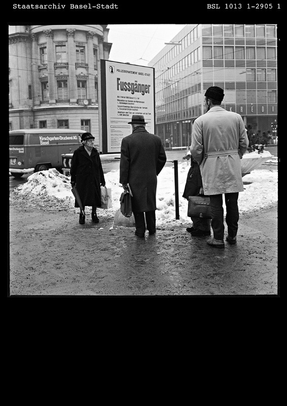 - Stadt.Geschichte.Basel: Neue Regeln im Fussverkehr. Forschungsdatenplattform Stadt.Geschichte.Basel, <https://forschung.stadtgeschichtebasel.ch/items/abb11860.html>, Stand: 06.12.2025.