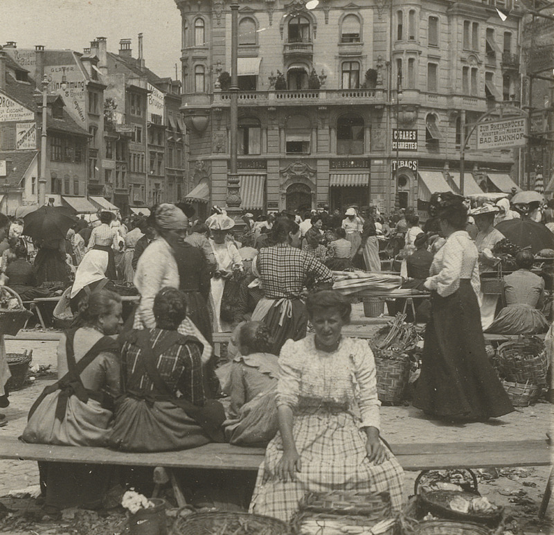 - Stadt.Geschichte.Basel: Verkäuferinnen auf dem Basler Marktplatz, undatiert. Forschungsdatenplattform Stadt.Geschichte.Basel, <https://forschung.stadtgeschichtebasel.ch/items/abb90159.html>, Stand: 07.10.2025.