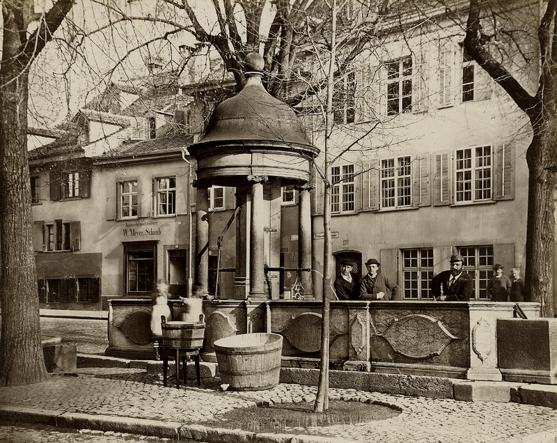 - Der Vierlindenbrunnen in der Steinenvorstadt. Foto: Jakob Koch, ca. 1880